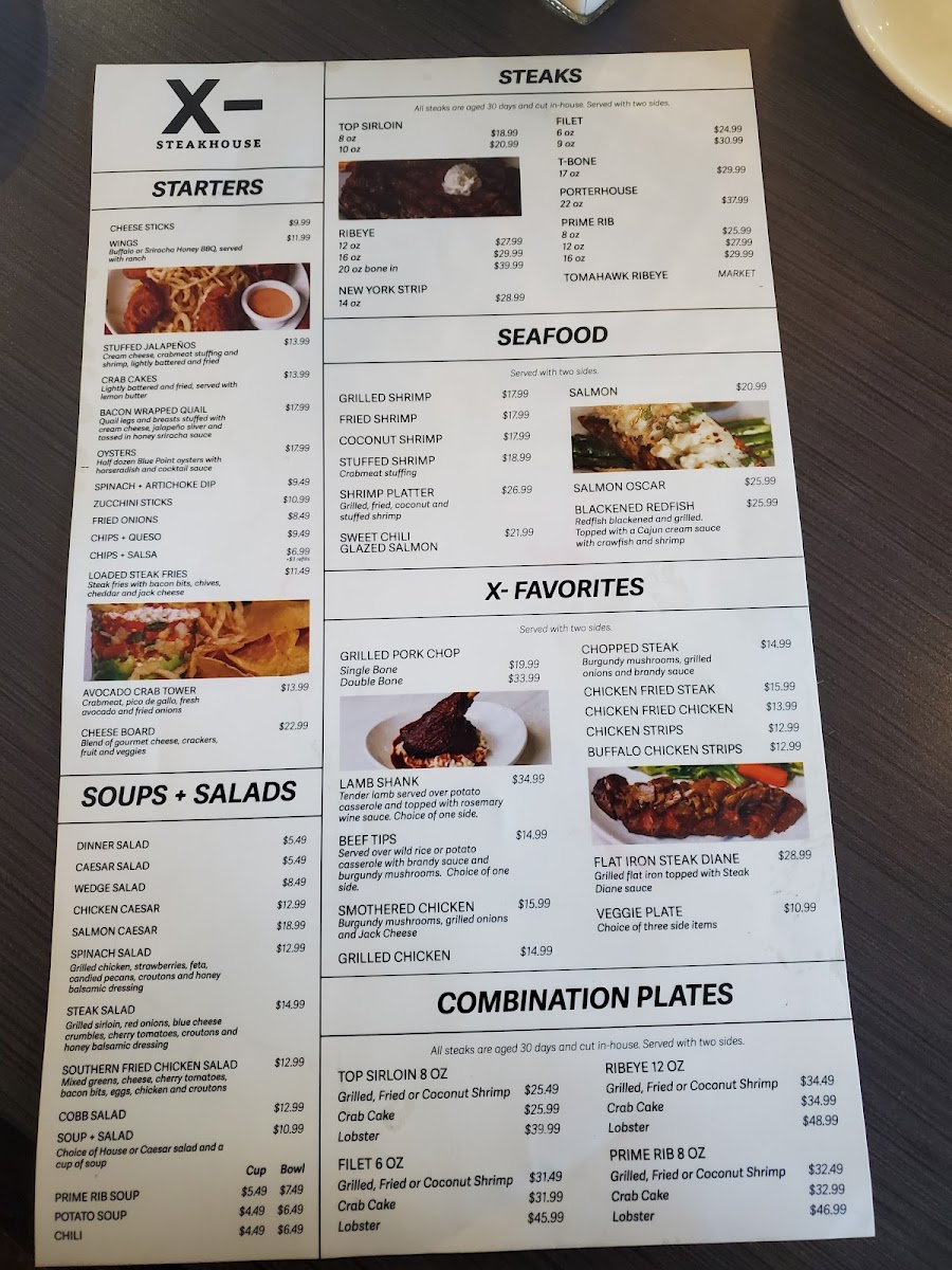 The X-Steakhouse Menu is a true celebration of flavor, where every dish promises to impress. Located at 9181 Town Square Blvd Suite 1311 in Amarillo, TX, this steakhouse offers an unforgettable dining experience. Whether you’re craving a perfectly cooked ribeye, a juicy sirloin, or something with a little more flair, the options here are sure to satisfy. Each meal is crafted with the finest ingredients, ensuring every bite is tender, flavorful, and packed with satisfaction.